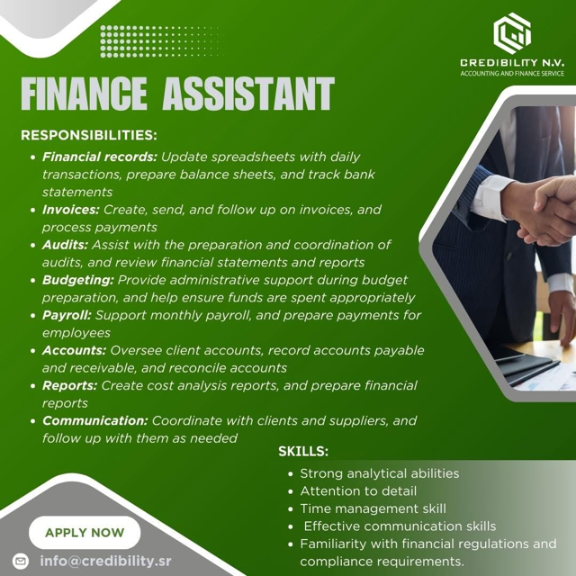 As a Finance Assistant, you will support our finance team in processing and preparing financial data, reports, and administrative tasks. You will contribute to an efficient and accurate financial administration and play a key role in the daily accounting processes for our clients. This position offers opportunities for growth in a professional work environment where integrity, precision, and development are central